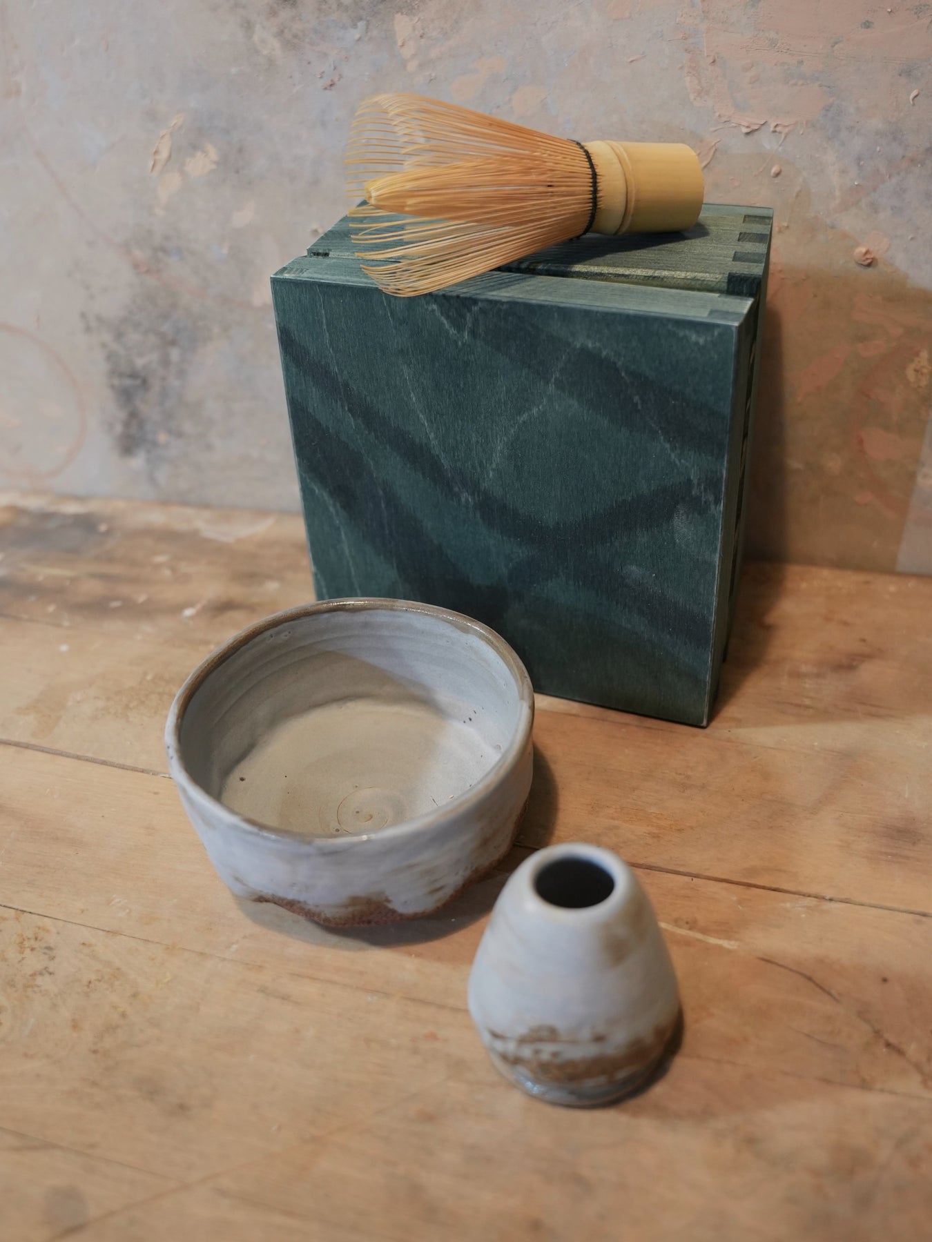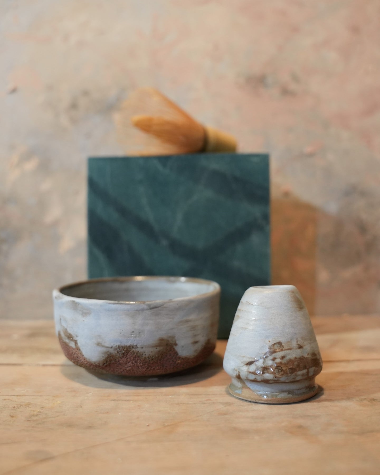 Ces créations sont issues d’une commission artistique exclusivement pour Kumiko Matcha : une collection de bols à matcha accompagnés de leur naoshi d’une rare beauté.