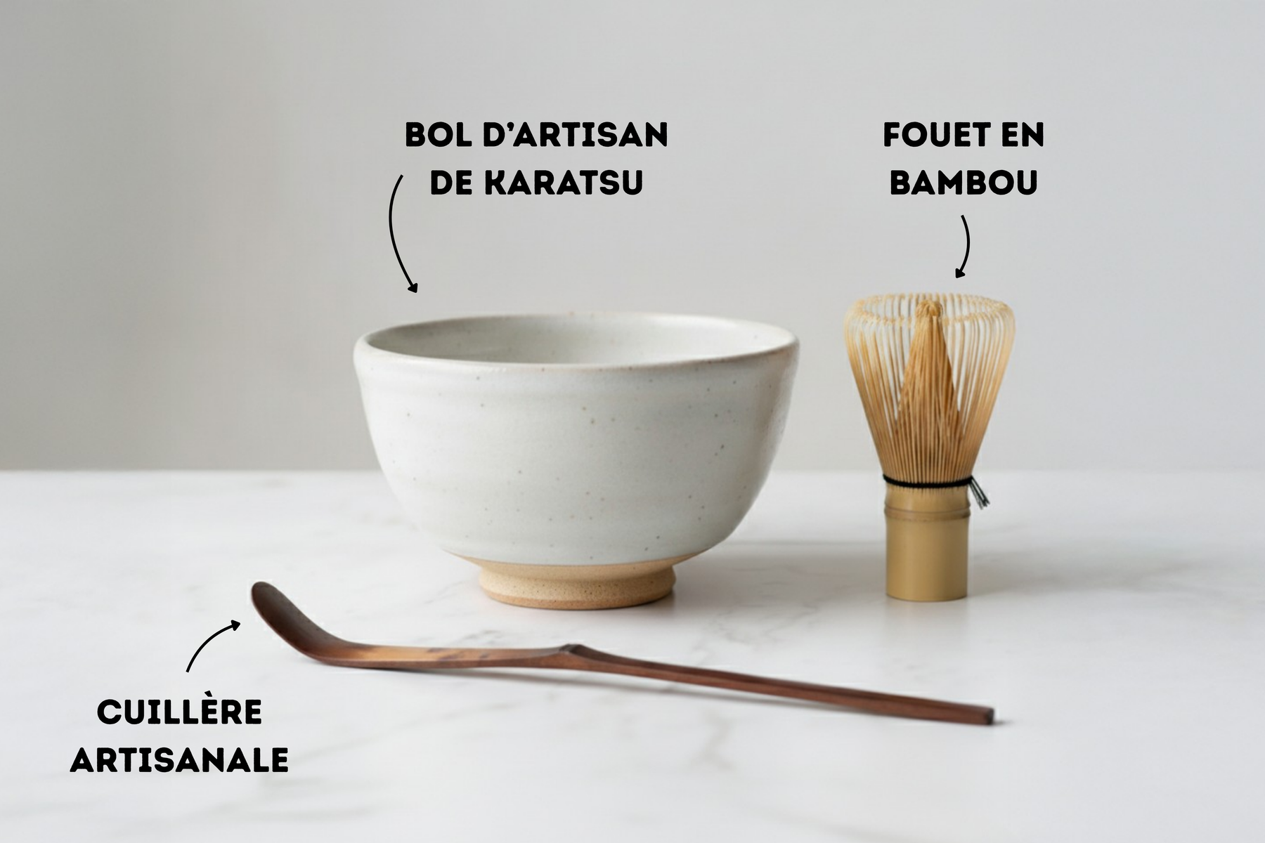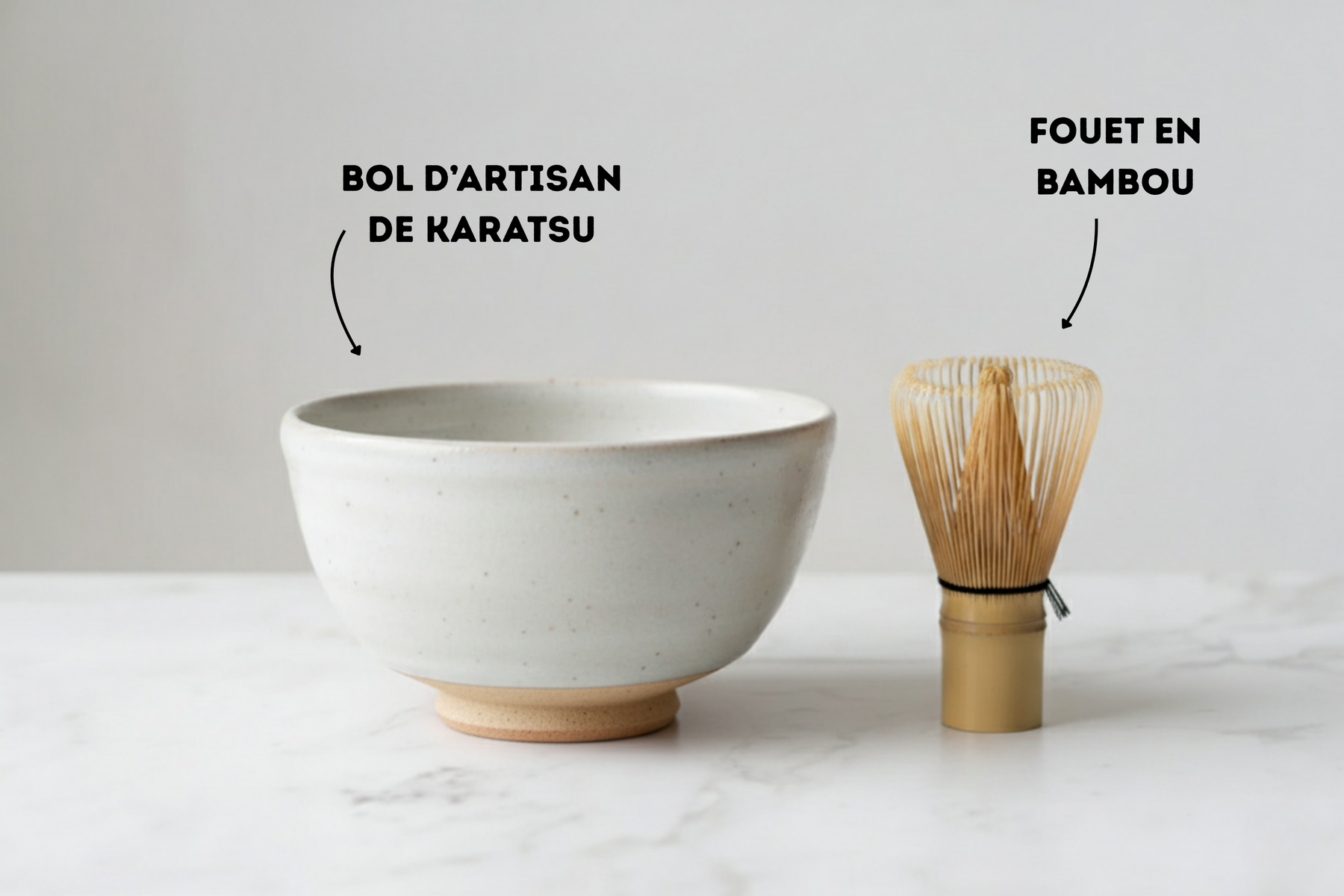When preparing matcha tea, leave most of the bowl empty to admire the colour of the matcha and the pearly white during your own matcha tea ritual. Note the texture and reflections of the matcha.